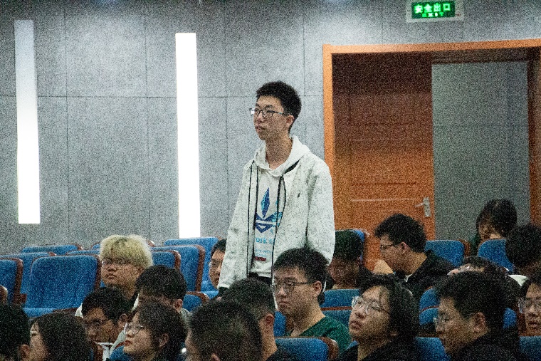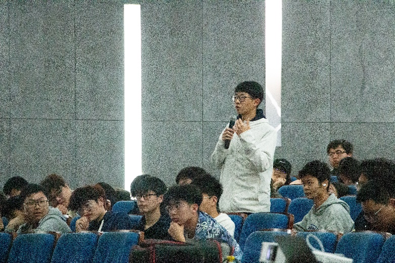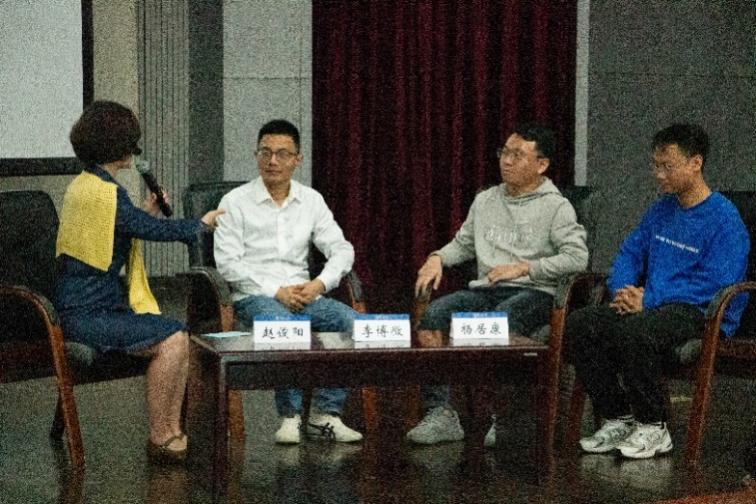 访谈交流环节中赵俊阳学长提出大学期间应着重人际交往等通用能力以及专业技术能力的培养,李博微学长认为应该将有限的精力多分配到自己侧重的领域,减少迷茫的过程。杨居康学长则提到了学长学姐对于自己方向选择上的榜样作用。面对辅导员老师以及同学们的提问,三位学长细心解答了有关就业环境、职场招聘、竞赛流程、人工智能发展前景等方面的问题,为同学们解开了心中埋藏已久的困惑。