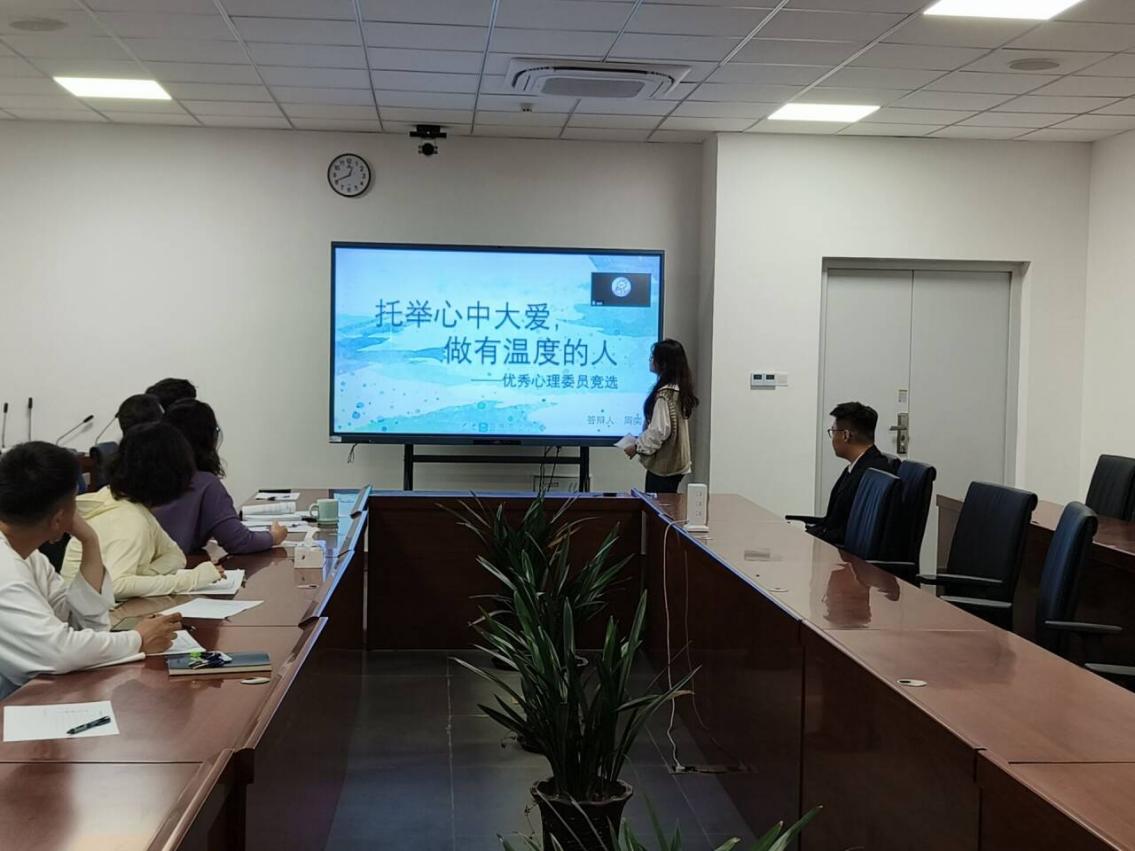 参加评选的心理委员们借助PPT分享了自己的工作内容与心得。他们积极参与心理委员培训,在“春暖锦绣·‘心’欣向荣”主题心理班会中,组织开展了一系列活动。如集体观影,分享心理自测视频的同时向同学们普及心理健康的相关内容和心理班会开展的原因及必要性。并策划并组织了一系列心理健康素拓活动,促进了心理健康的班级氛围的形成。
