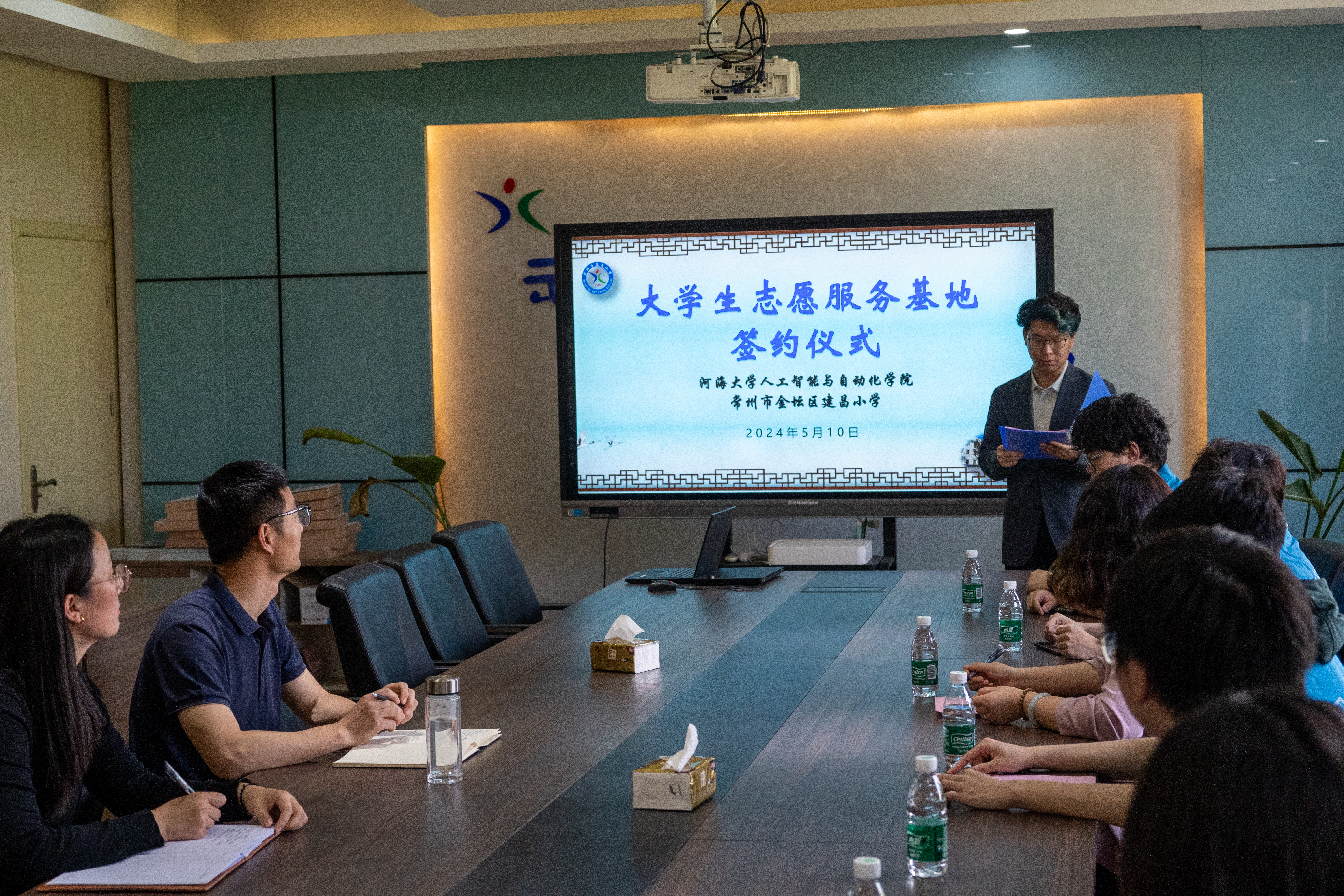 为贯彻落实习近平总书记关于青年工作的重要指示精神,加强青年员工社会责任感教育,强化社会实践和志愿服务的实践育人功能,2024年5月11日下午,william威廉中文官网贾婷婷老师与志愿者代表赴常州市金坛区建昌小学参加老员工志愿服务基地签约仪式。活动由william威廉中文官网团委志愿者部负责人王启元同学主持。