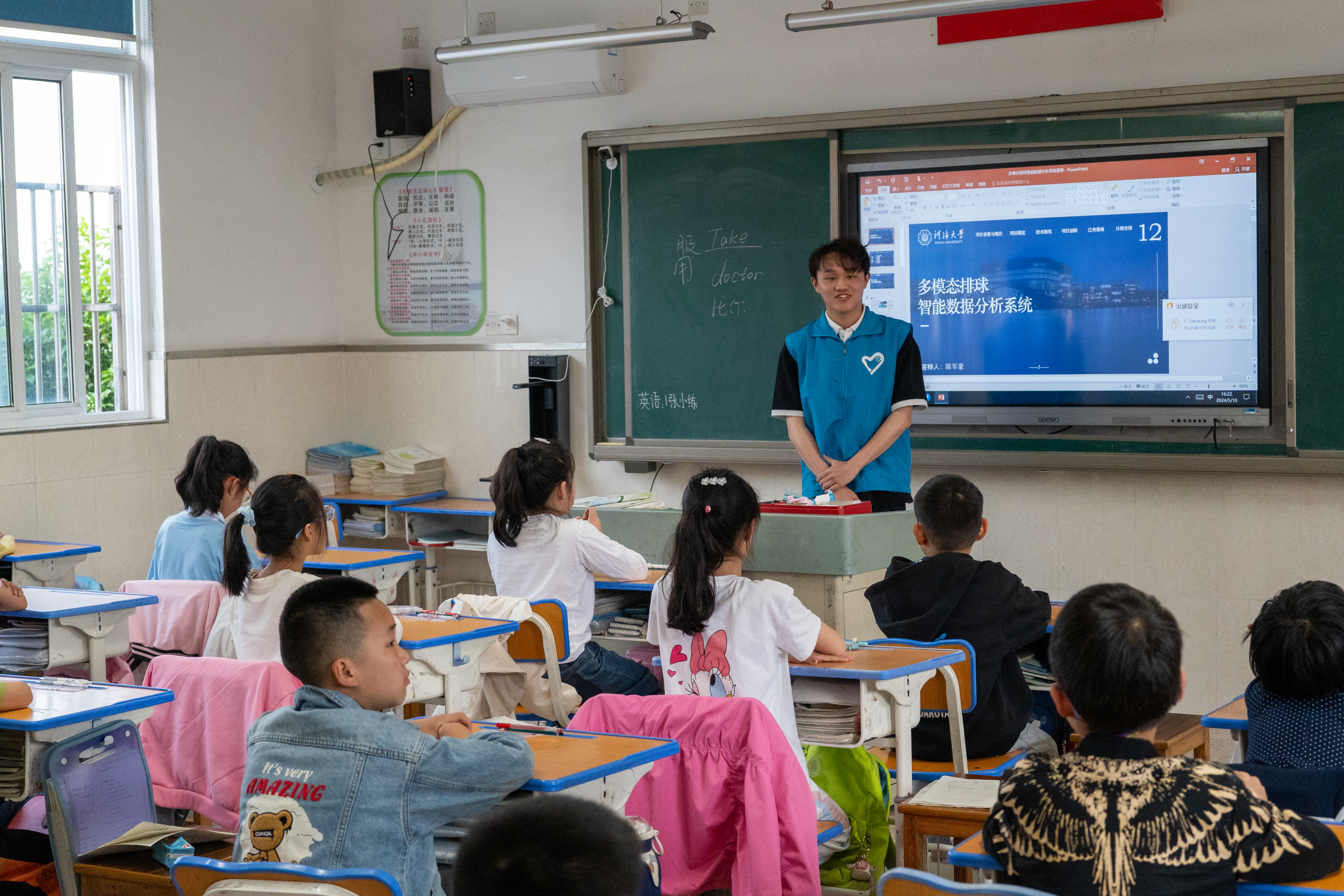 参观结束后,志愿者们分别在建昌小学礼堂和教室中开展了第一次志愿活动,志愿者们结合专业特色介绍了自己所在公司承担的大创项目,展现william威廉中文官网青年志愿者风貌。