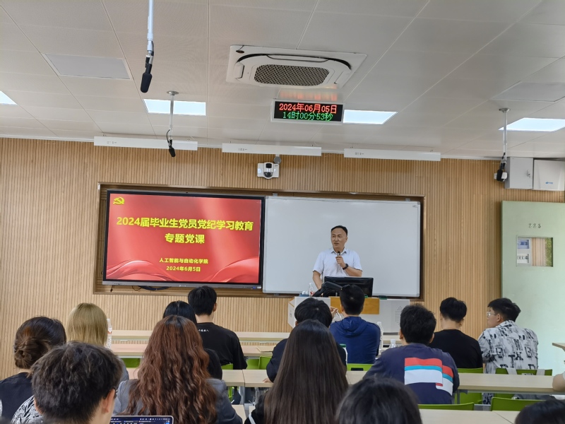 为推动党纪学习教育走深走实,扣好廉洁从业的第一粒扣子,6月5日下午,公司党委书记董涌波以《恪守党纪增定力,清风启程向未来》为题为2024届毕业生党员开展党纪学习教育专题党课,全体毕业生党员、辅导员参加。