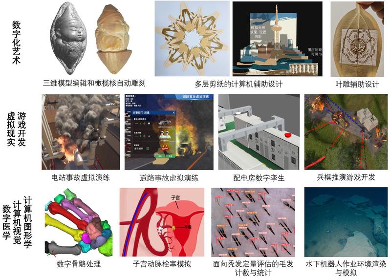部分在研课题:数字化艺术(三维模型编辑和橄榄核自动雕刻、多层剪纸的计算机辅助设计、叶雕辅助设计),游戏开发、虚拟现实(电站事故虚拟演练、道路事故虚拟演练、配电房数字孪生、兵棋推演游戏开发),(数字医学、计算机图形学、计算机视觉):数字骨骼处理、子宫动脉栓塞模拟、面向秃发定量评估的毛发计数与统计、水下机器人作业环境渲染与模拟。