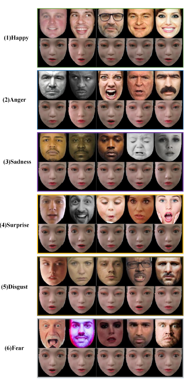 图4:在带有身份干扰下使用不同方法生成面部表情结果图