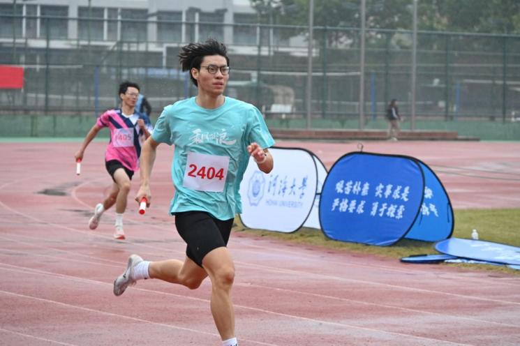 潮湿的跑道无法影响他的速度,毛毛细雨无法干扰他的激情,他如一匹千里良驹,以过人的速度和顽强的毅力昂首冲过了终点线。800米不仅仅是一个数字、一段距离,更是运动健儿们挥洒的无数汗水和付出的不懈努力。800米,是一个长达两分多钟的乐章,每一秒都是奋斗的旋律,才可谱出绚丽的华章。